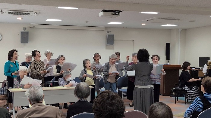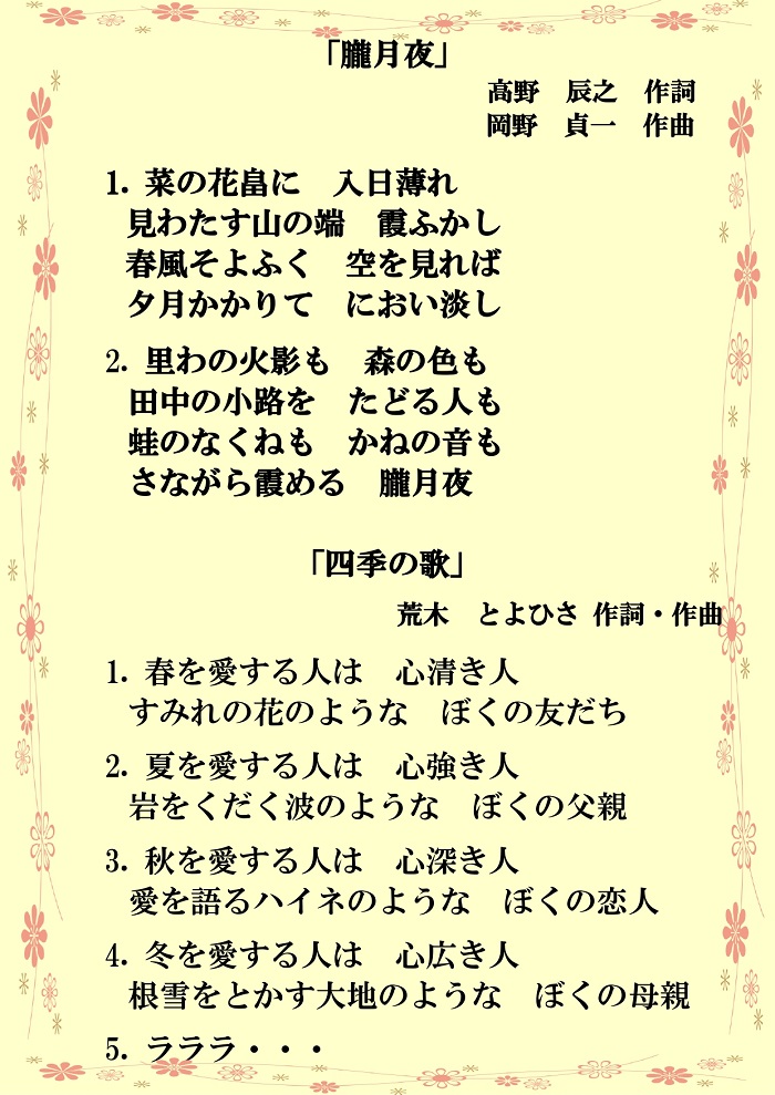 「朧月夜」と「四季の歌」を一緒に楽しく歌いました。