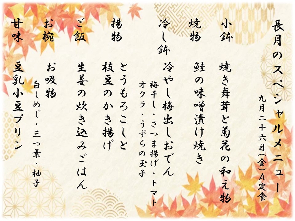 9月 スペシャルメニュー