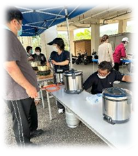 炊き出しを想定し、3つ班に分かれ5分の1の量を調理しました。