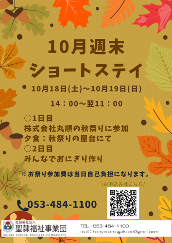| 14:10 | 浜松学園事務所にて受付 | 新しくご利用される方は部屋の案内を致します。 |
