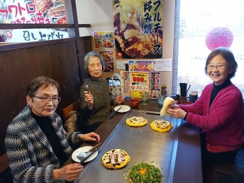 お好み焼きを食べる