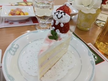 ケーキのいちごがサンタさんになってます