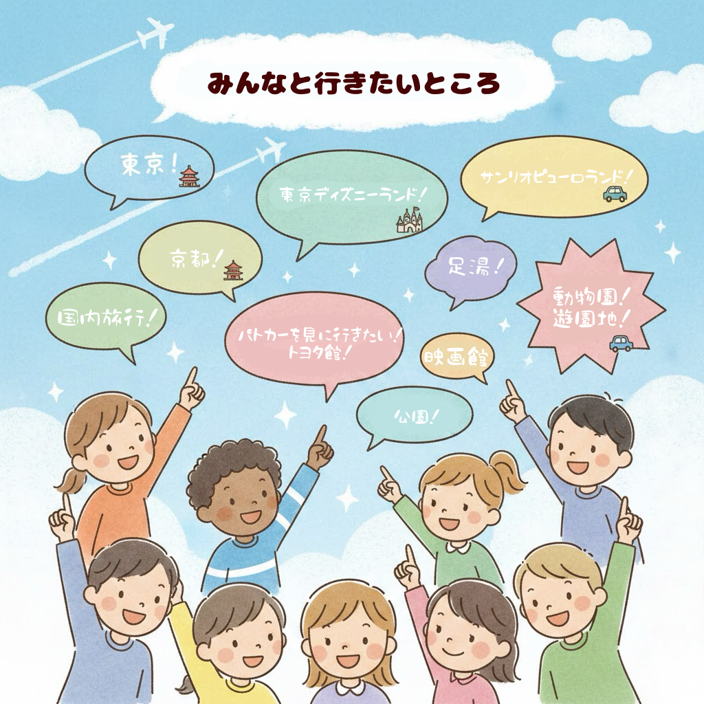 当日、たいよう🌞・そら🌈組の子どもたちが集まり、行きたいところや買って欲しいものなど
