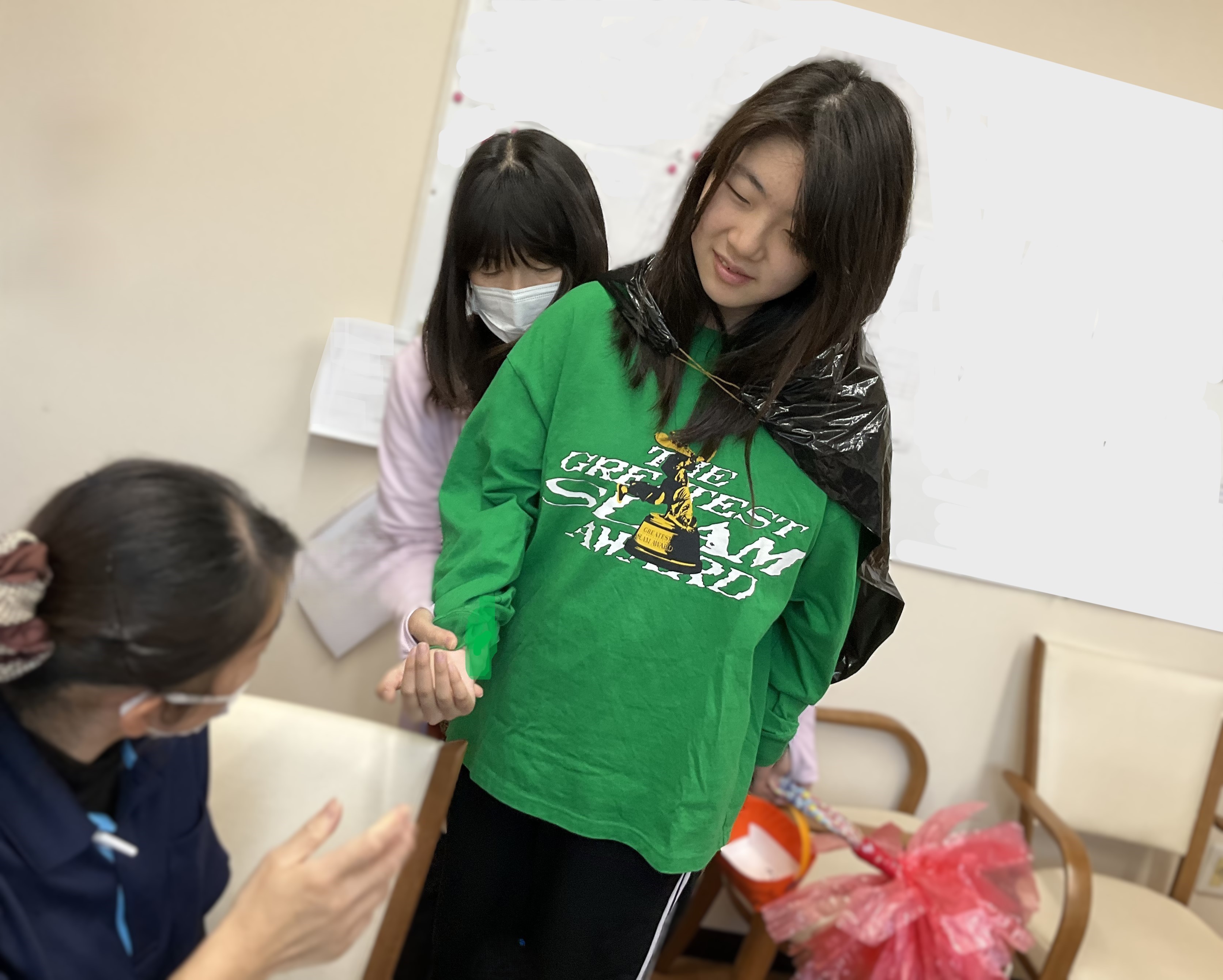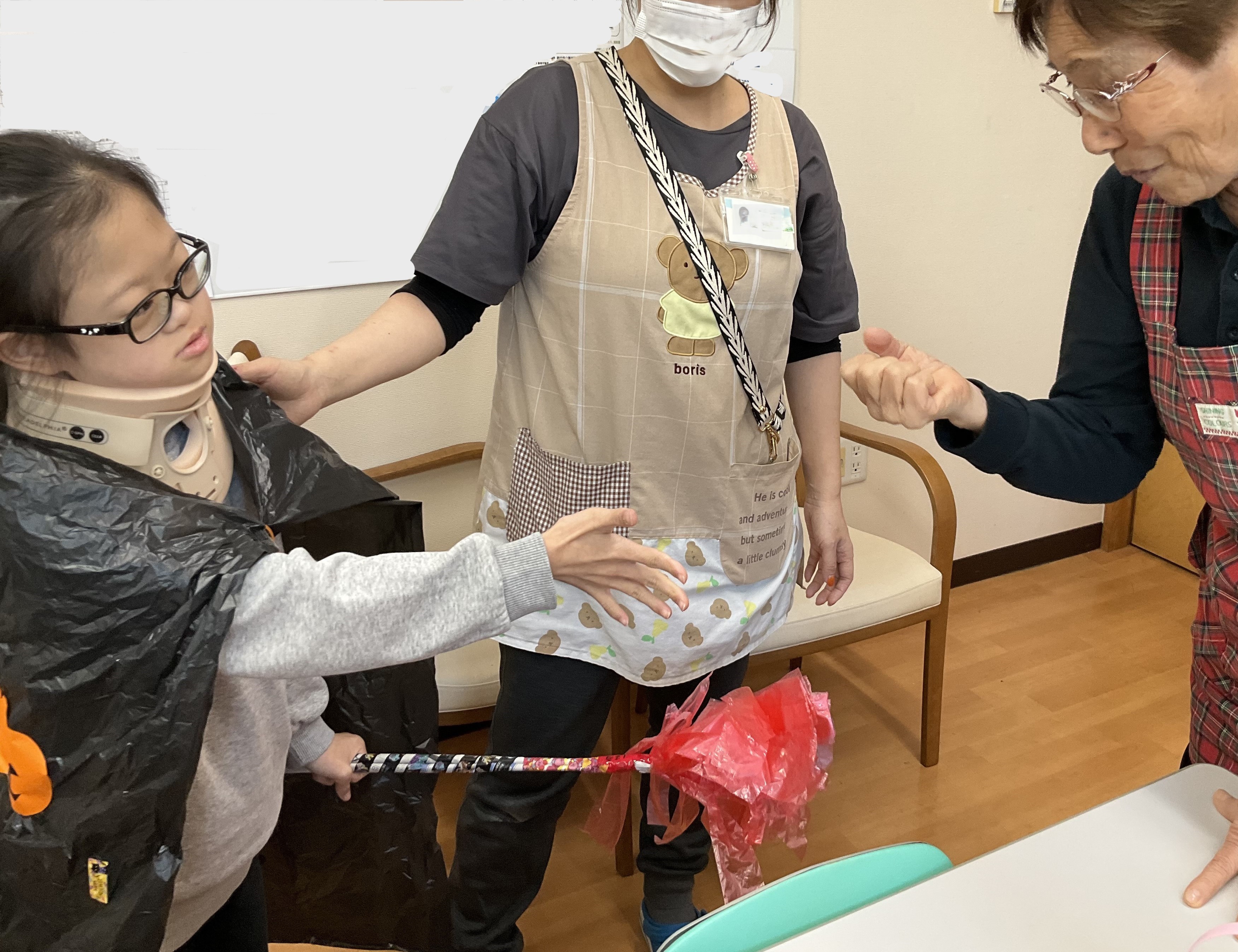 併設施設の職員さんたちにお菓子をもらいにまわりました。