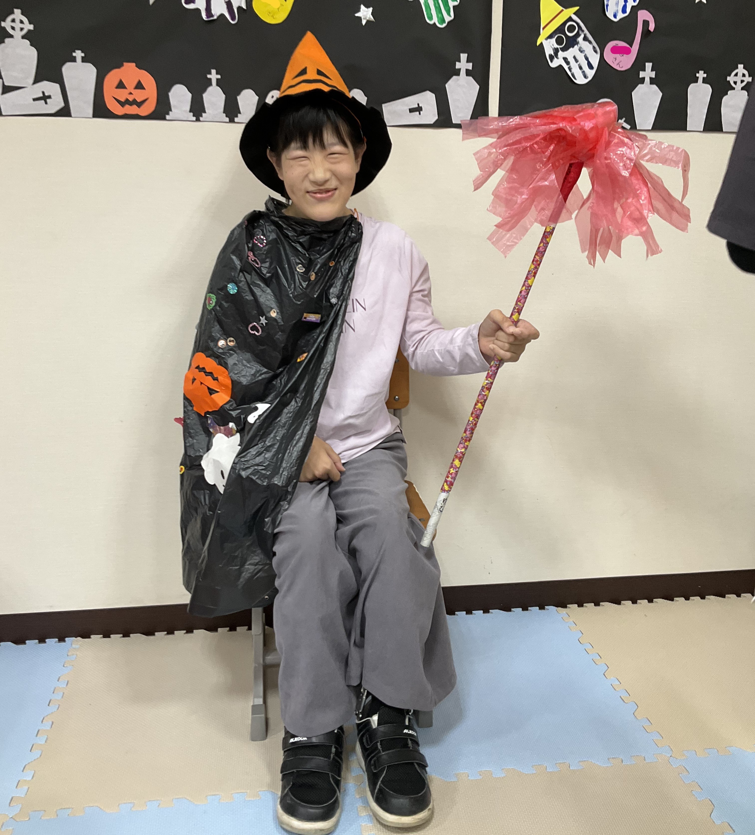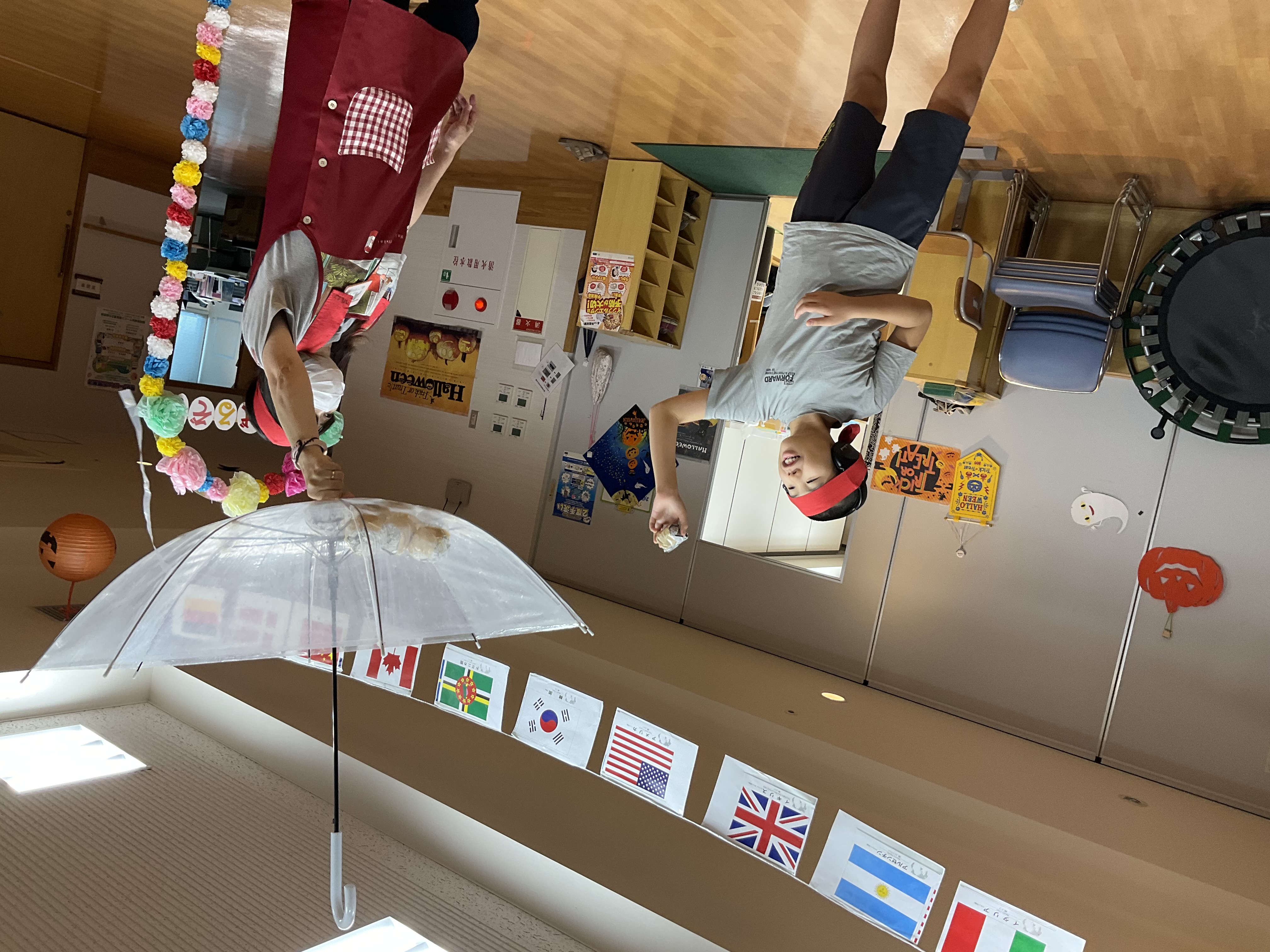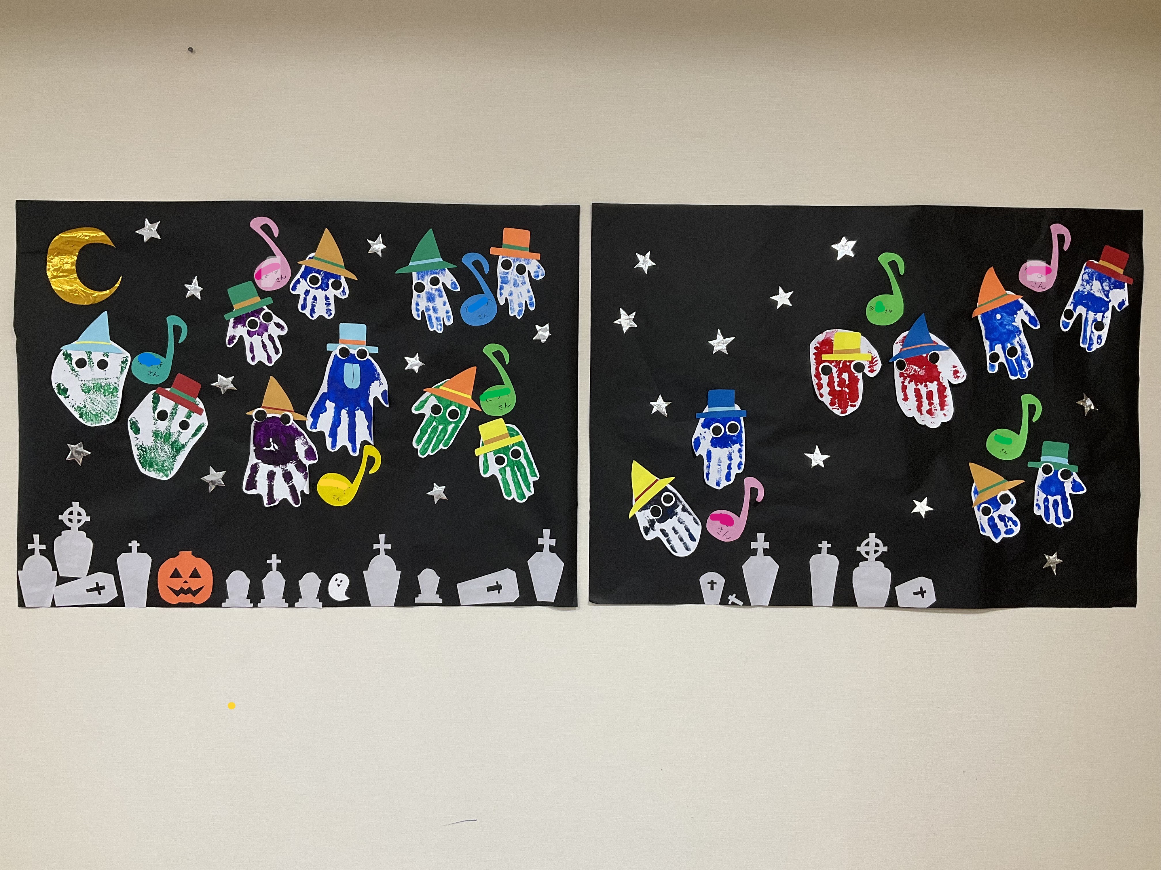 10月は残暑が厳しかったですが、ホールで運動会をしたり、ハロウィン週間には自分たちで作ったお面とマントをつけてお菓子をもらいに行きました。
