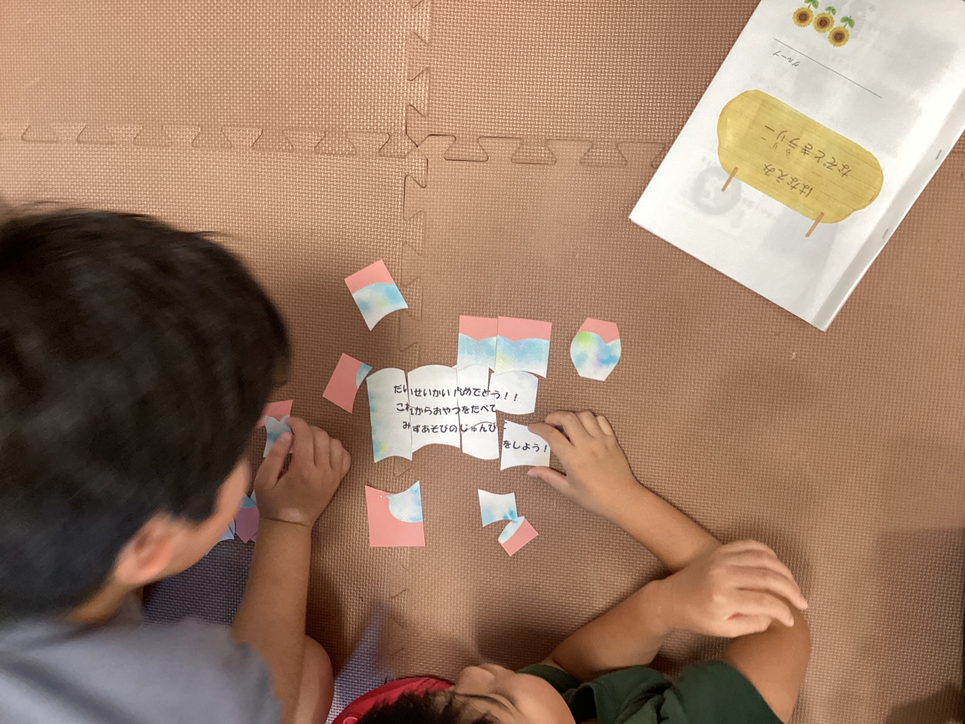 つきクラスでは、電子黒板に工程を写し見てもらいました。こども達からは「わかりやすい!」という声がありました😊