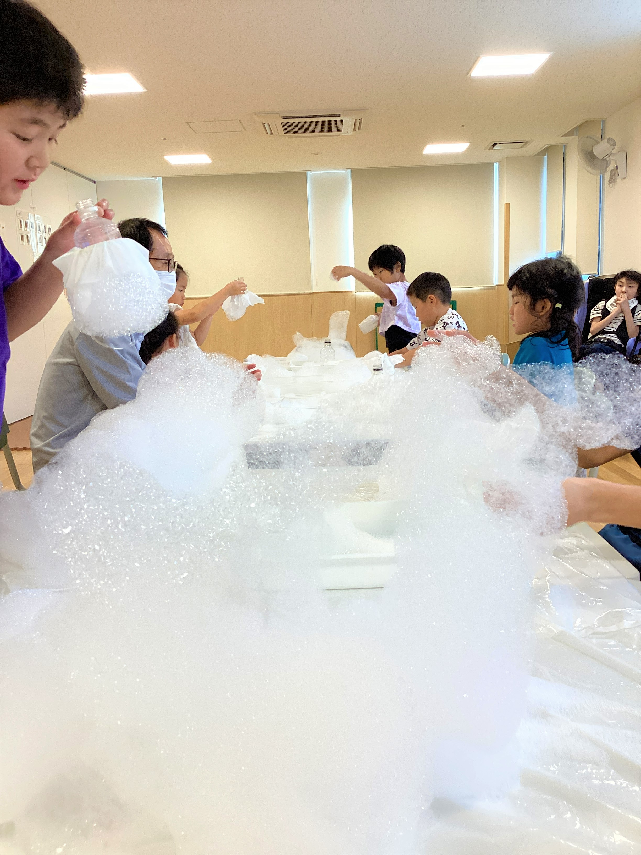 泡遊びでは、泡で好きな形を作ったり飛ばしてみたり感触を楽しんだり夢中になって遊んでいました💞