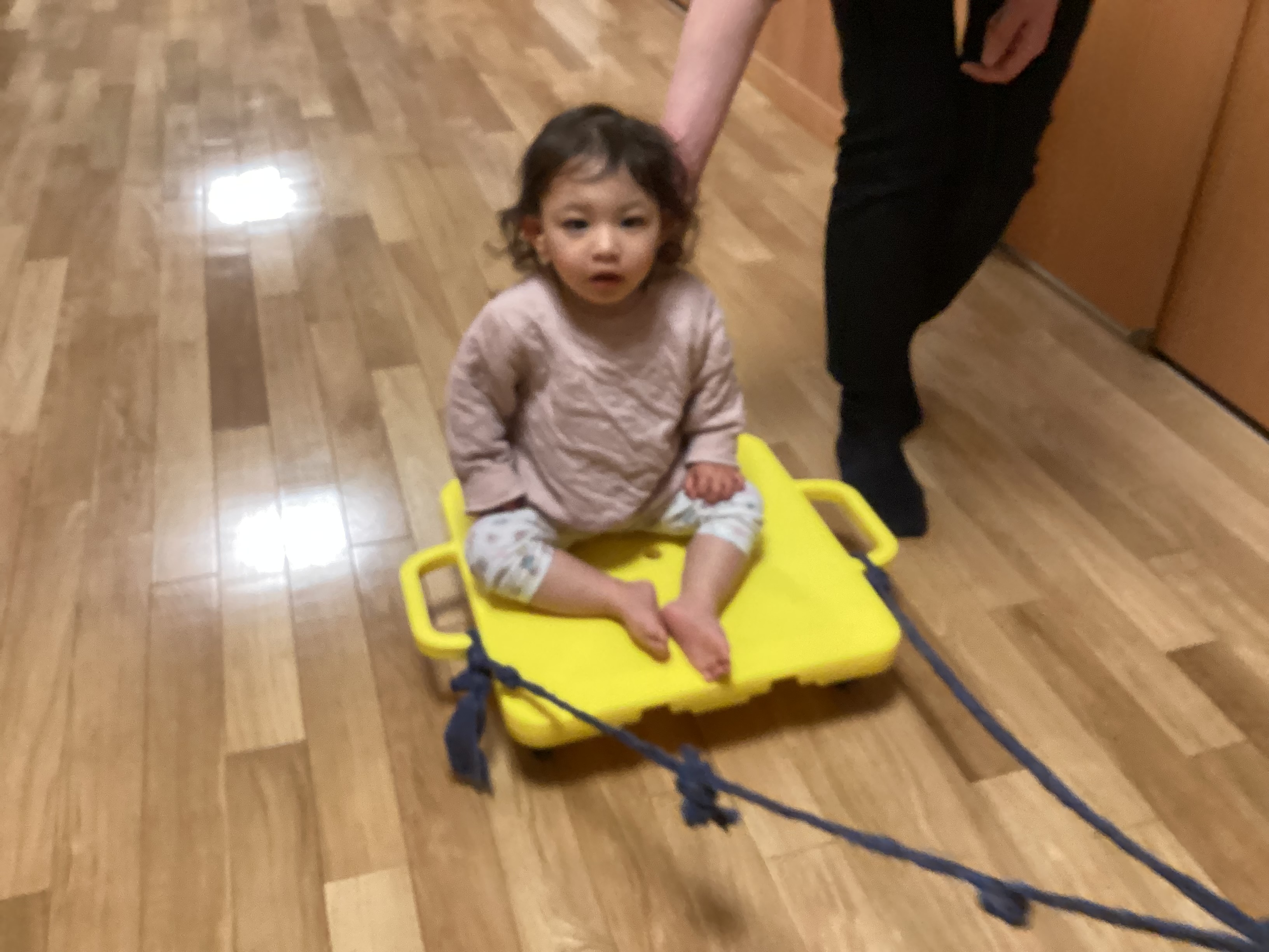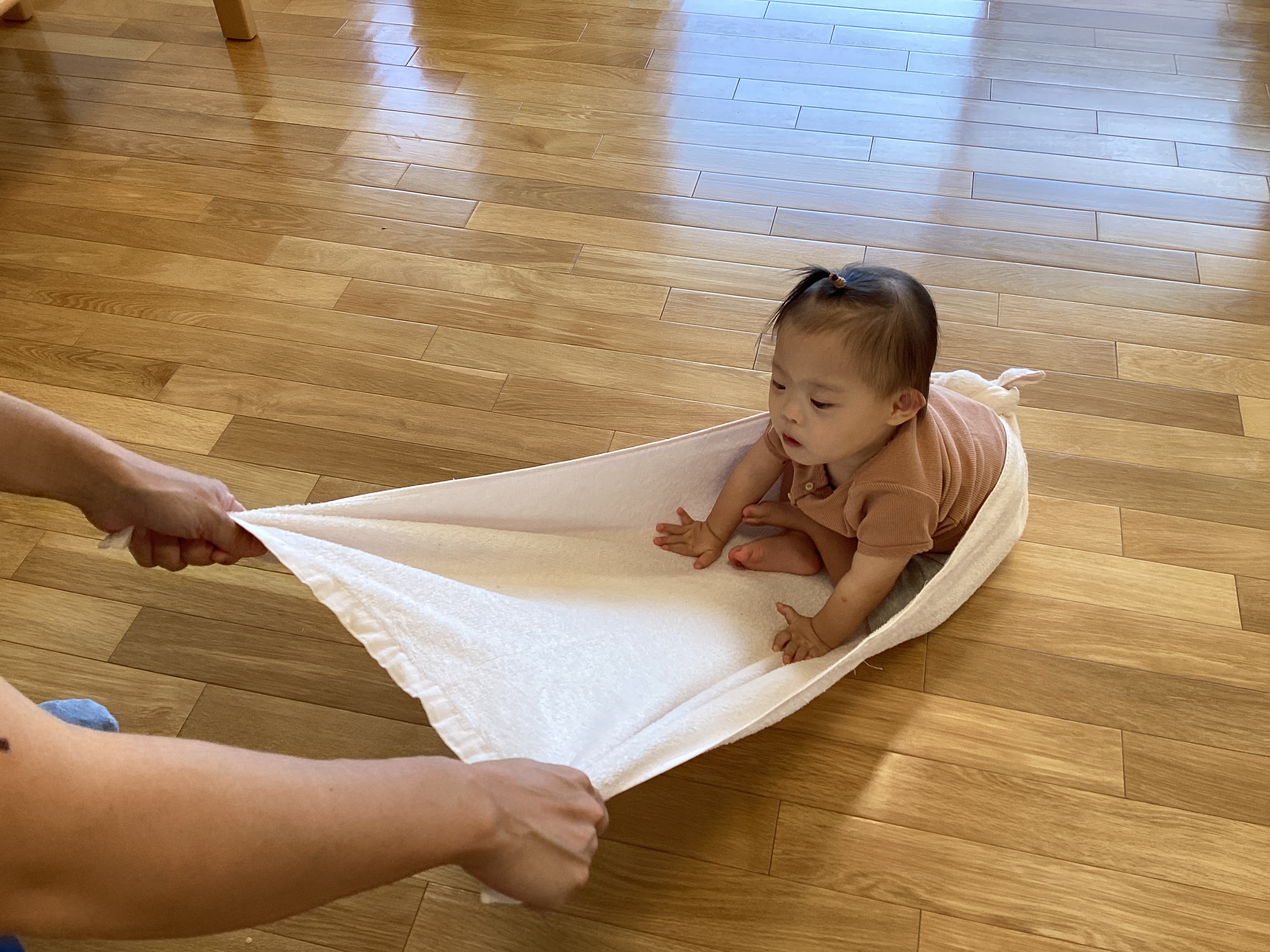 膝の上に乗せて揺れてみたり、タオルをソリのようにして動いて見たり…
