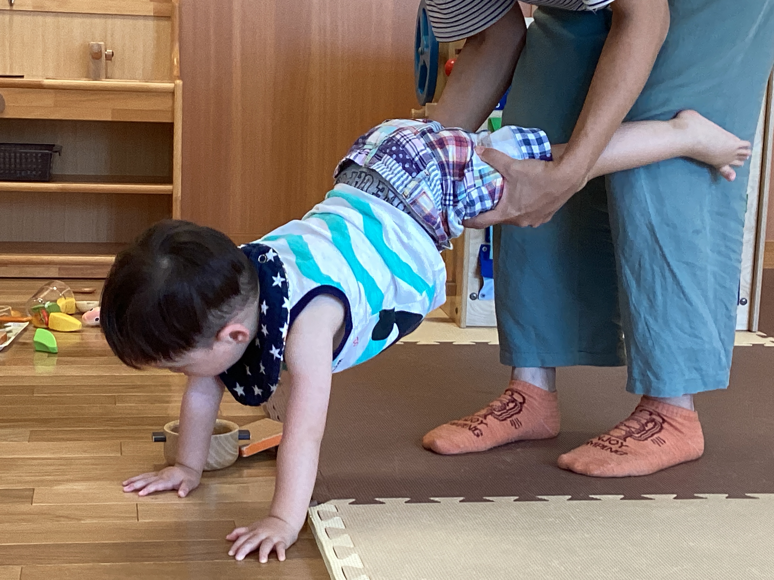手に体重を乗せることが苦手なお子さんはこのような遊びから少しずつ慣らしていく方法もあります