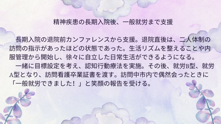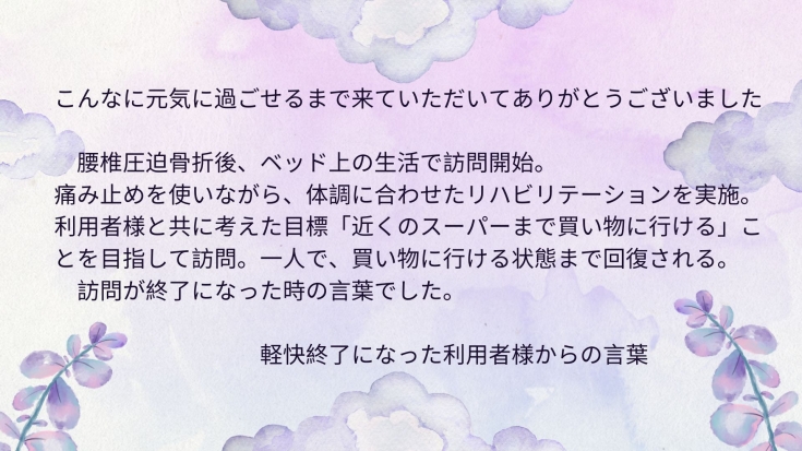 ・ご本人、ご家族の思いに沿ったオーダーメイドの看護です。