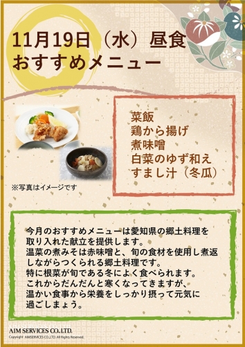 11月のおすすめメニューを担当しました エームサービス株式会社の平野です