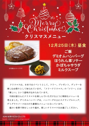 12月のおすすめメニューを担当しました エームサービス株式会社の青山です