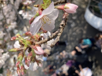 横須賀愛光園入口に咲く一本の桜の樹。その下で集い春の風、桜のにおい、色、散った花びらで染まる地面五感で感じながら職員と利用者の方々で甘酒を堪能しました。