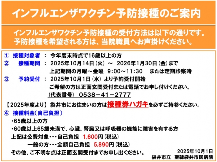インフルエンザワクチン予防接種について