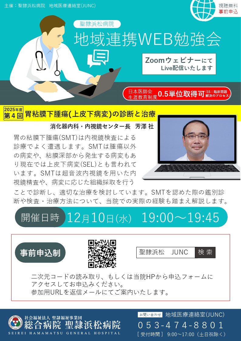地域の医療従事者の皆さまと共に、治療や疾患に関わる知識を深める機会をつくりたいと、このたび「ウェブ勉強会」を定期的に開催させていただくこととなりました。会場への移動がないため、ご自宅などでパソコンやスマートフォンを用いて、手軽にご視聴いただけます。