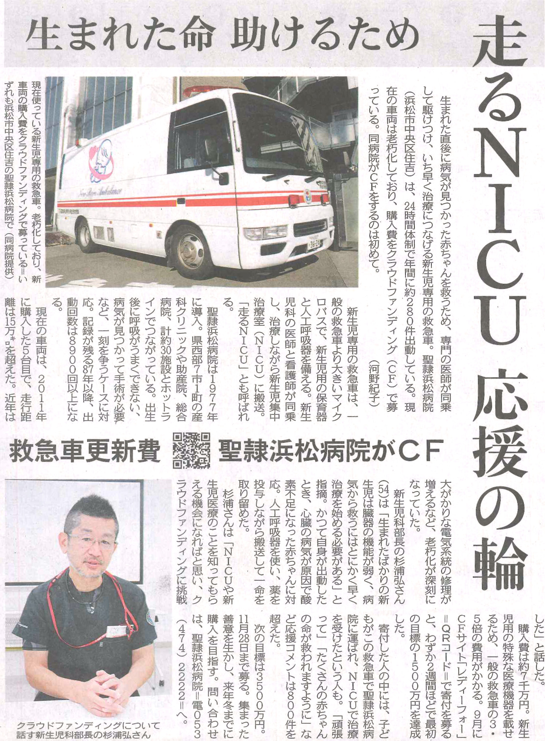 | 走るNICU 応援の輪 救急車更新費 聖隷浜松病院がCF | 2025年10月1日 | 中日新聞 |