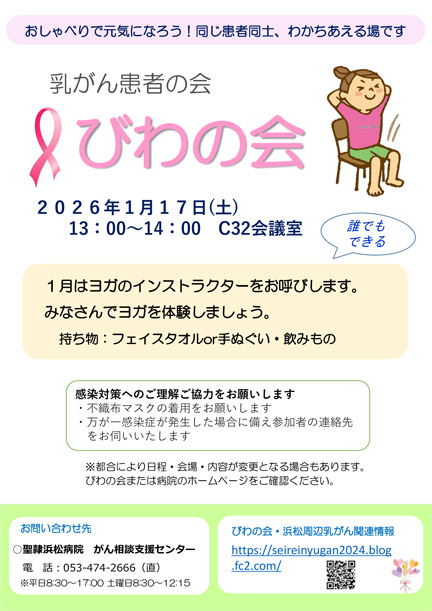 乳がん患者の会 びわの会「ヨガ体験」開催のお知らせ(1月17日(土)開催)