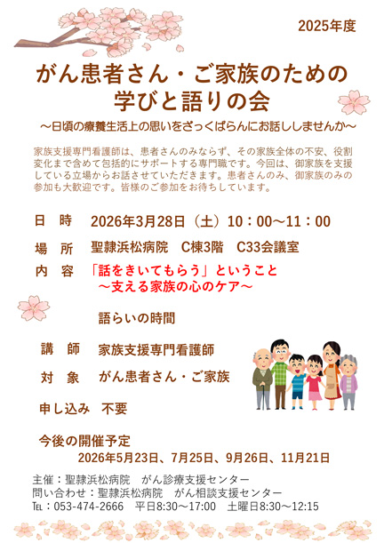 3.  >  2025年度 第6回 がん患者さん・ご家族のための学びと語りの会(3月28日(土)開催)