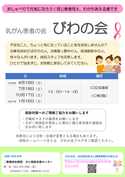 「乳がん患者の会 びわの会」開催のお知らせ(2026年度)