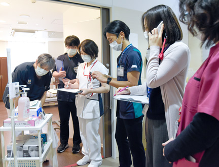 病院はさまざまな感染症の診療をする一方で、病気や治療のため免疫が低下した患者さんが感染症にかからないように感染対策を行っています。当院には、感染症や薬剤耐性菌を拡大させない対策を強力かつ円滑に実行する感染制御チームがあり、各部門との連絡や調整、職員教育などの役割を担いながら感染対策を推進しています。