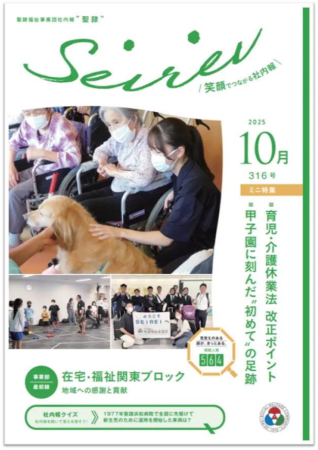 社内報「聖隷」eブック(電子版) 職員向けに過去4号分を公開しています。 電子書籍同様、ページをめくるように閲覧でき、ページの拡大やワード検索も可能。 関連リンクにもアクセスしやすくなっています。 ※閲覧時は、社内報発行日にデスクネッツインフォメーションでお知らせしているユーザー名・パスワードをご入力ください。 最新号 社内報「聖隷」316号(2025年10月発行) バックナンバー 社内報「聖隷」315号(2025年7月発行) 社内報「聖隷」314号(2025年4月発行) 社内報「聖隷」313号(2025年1月発行)