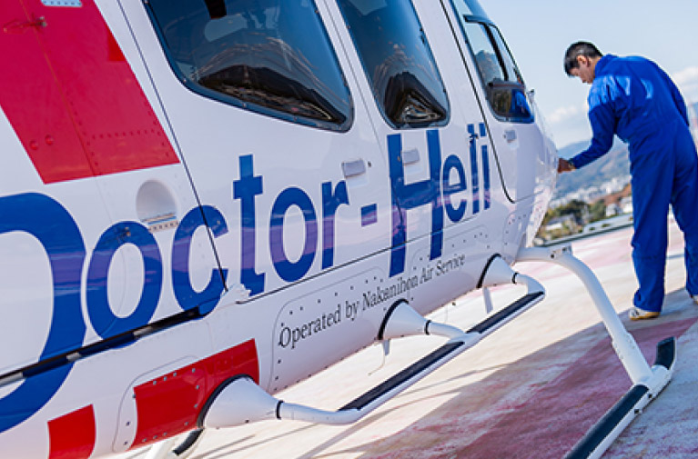 ドクターヘリは、救急現場で迅速に本格的救急医療をおこなうための医師派遣システムです。聖隷三方原病院では1999年4月に本邦初のドクターヘリの運航を浜松救急医学研究会による自主運航の型で開始 し、2001年10月から正式なドクターヘリ導入促進事業として運用を開始しました。