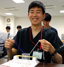 縫合実習でお手本を見せる救急科I先生☆