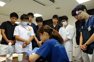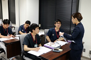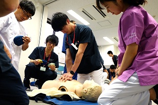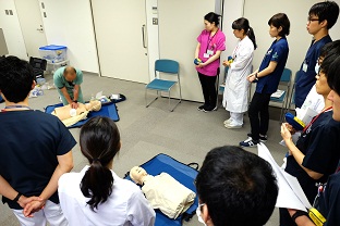 午前中の縫合実習が終わり、午後はBLSと接遇マナーです!