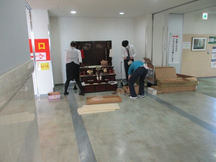 正面玄関ホールへ飾り付けましたので、ぜひみなさんも足を止めてご覧ください♪