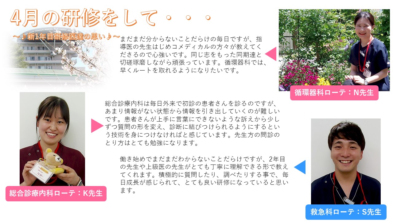 今日は新1年目研修医の研修をスタートしてどうか数名の研修医に聞いてみました♪