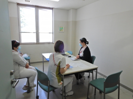 地域の方々との多職種協働カンファレンスができます。入退院支援看護師、看護相談室が環境設定も含めて進めてくれます。