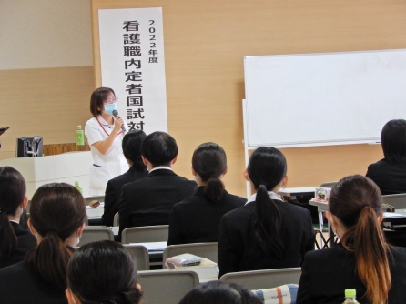 10月22日pm、次年度新人看護職内定者を対象とした国試対策勉強会を開催しました。講師は例年お願いしている“フラピエかおり”先生です。2時間という短い時間ですが、頭に体にビシビシ入ってくる、分かりやすい、と好評でした。知識、あと100日間の勉強の仕方、国試対策のコツなど細かくパワフルに教えていただきました。必ず国家試験を合格し、2023年4月に会いましょう。お待ちしています。
