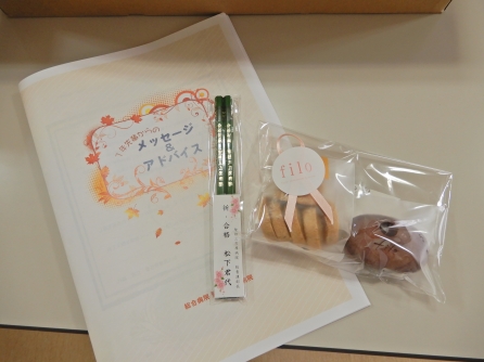 現在1年目看護師の先輩達からのメッセージと合格鉛筆・・・そして疲れた頭に甘い物。