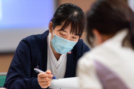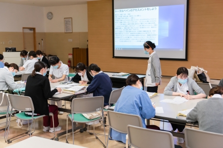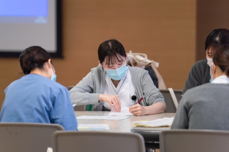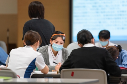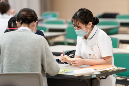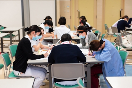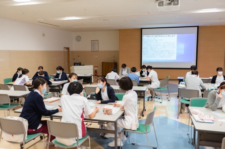 がん看護1の研修に続けて「4回目のリフレクション研修」も実施しました。自分の看護を言語化し自分の行った看護の意味・価値に気づく、他者の看護の語りの傾聴、新人同士のコミュニケーションの学習目標に向かえたでしょうか・・・。同期と共に自身の成長を感じられる時間になればと思います。