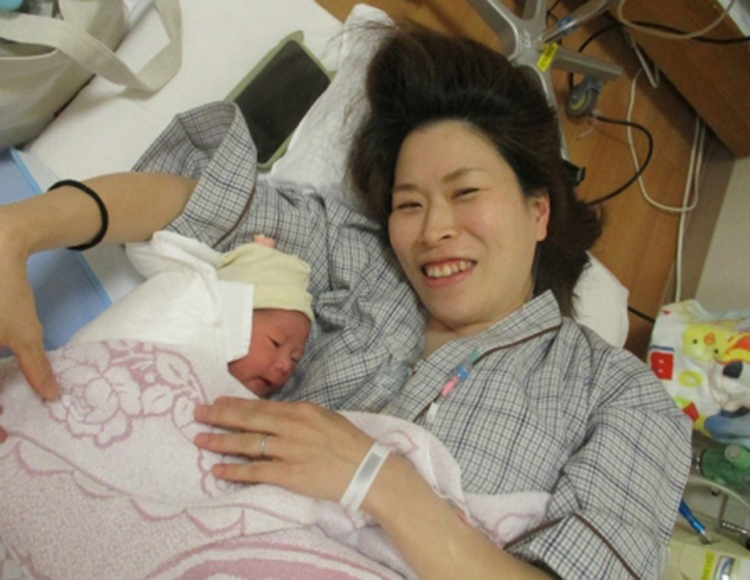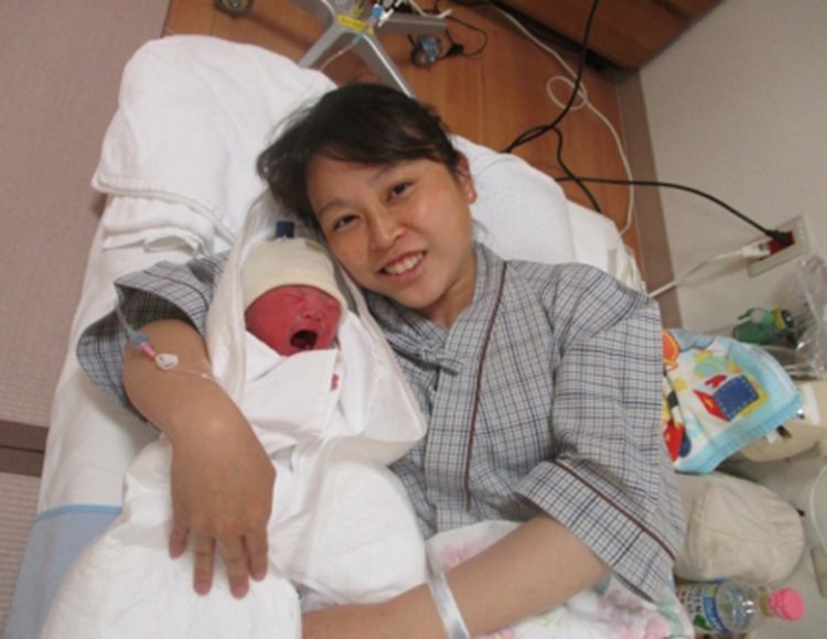 ご出産おめでとうございます(^o^) 破水で来院され、病院に到着してからどんどん陣痛が強くなりそのままたんぽぽへ移動。 たんぽぽへ移動してからも順調に進んであっという間に元気な女の子を出産されました!! さすが経産婦さん!最後の呼吸法も上手でした! 旦那さんと電話を繋いで、旦那さんに応援してもらいながら出産できましたね(*^_^*) お臍はお母さんに切ってもらいました♪♪