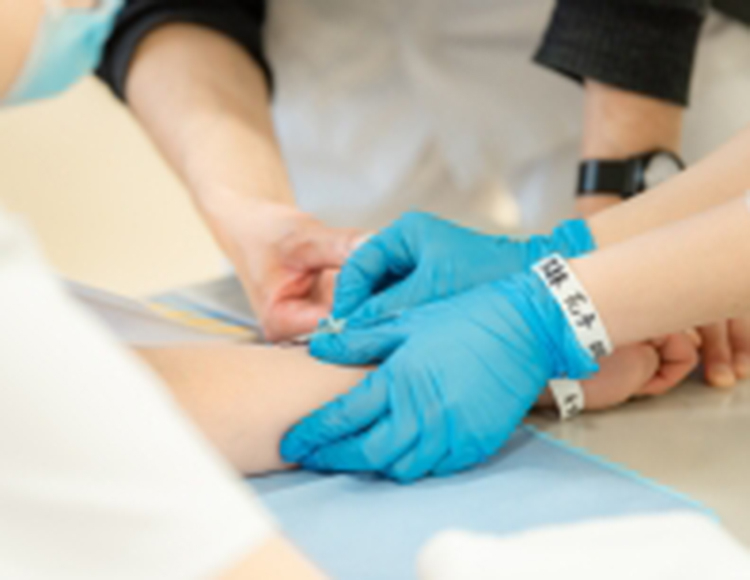 当院の新人看護職対象の静脈注射に関する研修は、3段階に分けて4月、5月、10月に実施します。院内マニュアル、行為基準に沿った実施、薬品管理方法の理解、患者家族教育の理解をし、最終的に静脈注射レベル3に到達することを学習目標にしています。それ以降、看護職員全員が毎年レベル3の知識更新をeラーニングで実施しています。私もやっています(^^V 4月の研修は静脈留置針の挿入と固定について学びますが、当院で採用している物品の使い方、患者確認方法、感染管理などマニュアルに沿って丁寧に行います。侵襲のある技術になりますので緊張感が高まります。