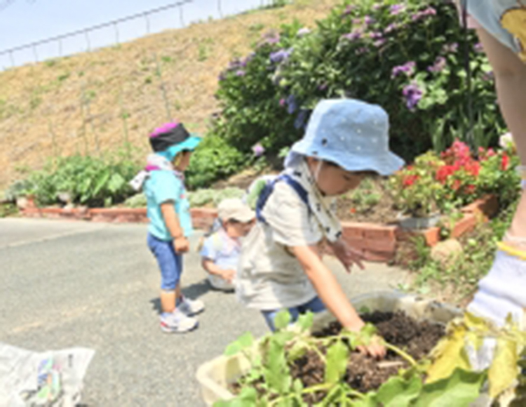 さくら保育園ではジャガイモ掘りの体験をしました。 最初は土を触ることに抵抗を感じ、なかなか手がでなかった子も、次第に慣れてきて無事にジャガイモを掘りあげることができました。 プランターから獲れたジャガイモはどれも立派なものばかり!掘ったジャガイモはお土産に持ち帰りました。