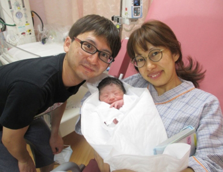 ご出産おめでとうございます。 良い所見で入院してこられて、順調に進みましたね。パパの立ち会いもできて良かったです。 とても上手なお産でしたよ。 色白の可愛い女の子です♪ 育児頑張ってください★