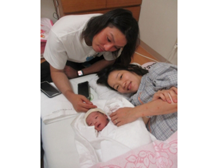 ご出産おめでとうございます。 初めてのお産とは思えないくらいスムーズに進みましたね。とても痛かったと思いますが冷静でした。そして息むのも上手でしたね。 赤ちゃんは立派な体重がありましたがスムーズに出てきてくれました。とっても可愛い女の子です!! パパも立ち会いが出来て良かったですね。 これから育児楽しんでください★☆
