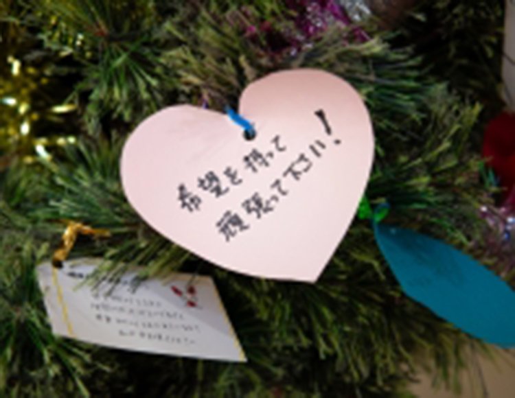 浜松学生献血推進委員会さまより、「全国学生クリスマス献血キャンペーン2024」(*)でお寄せいただいたメッセージツリーを展示しました。 このメッセージツリーは献血にご協力いただいた方々から患者さんへの応援メッセージをいただき、学生さんらの手で飾り付けられたものです。 この企画に参加している学生さん、ご協力いただいている多くの方々、献血者おひとりおひとりに感謝申し上げます。 12月25日(水)までF号館1階のステンドグラスの下に展示させてただきます。ご来院の際にはぜひご覧ください。*『全国学生クリスマス献血キャンペーン』は、全国の学生ボランティア(全国学生献血推進実行委員会)の主催