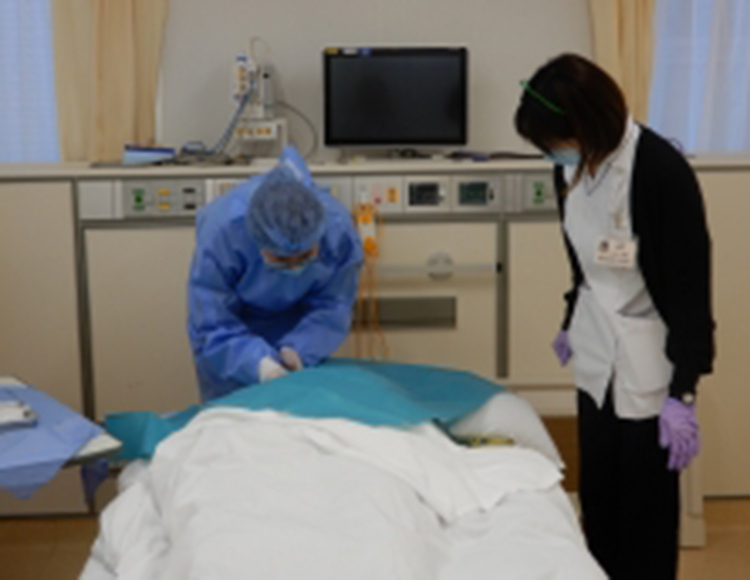 新人看護師が各職場でなかなか経験できない手技はシミュレーション研修で補います。各職場でも行いますが、今回の紹介は中央企画の「中心静脈」です。