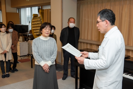 木部所長より「リハビリやレクリエーション、各種行事などに活用させていただきます」と挨拶があり、感謝状を贈呈しました。