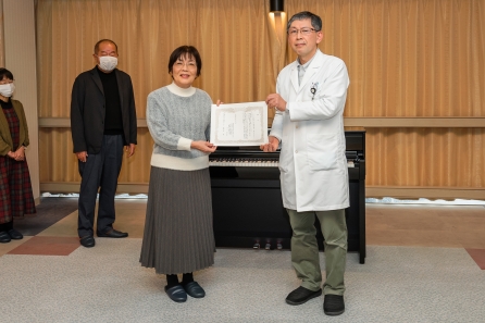 聖隷おおぞら療育センターの家族の会様より、電子ピアノを寄贈していただき、1月31日に感謝状の贈呈セレモニーを執り行いました。