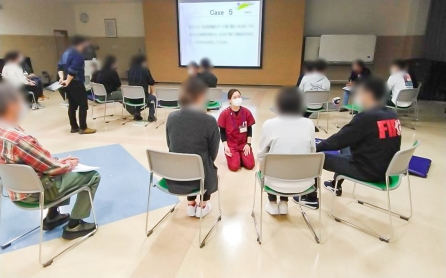 インストラクターコースでは、その指導者を育成します。指導者と受講者は、主に地域の消防職員と病院職員等です。