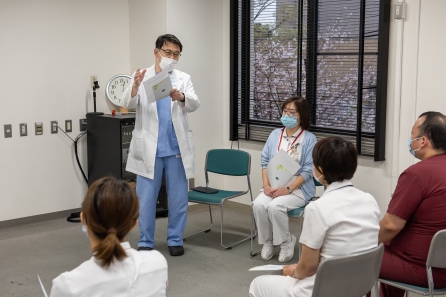 研修責任者は北堀次長です。その他、指導者にクリティカルケア特定認定看護師のMさん、皮膚排泄ケア認定看護師のSさん、1年間よろしくお願いします。