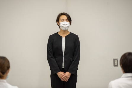 院長より 以前勤務していたアメリカでのアドバンスの資格をもった看護師の活躍について話し、皆さんへの期待を伝えてくれました。