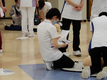 5日目!まだまだ研修は続きます。今日は一次救命救急処置、BLSの研修です。