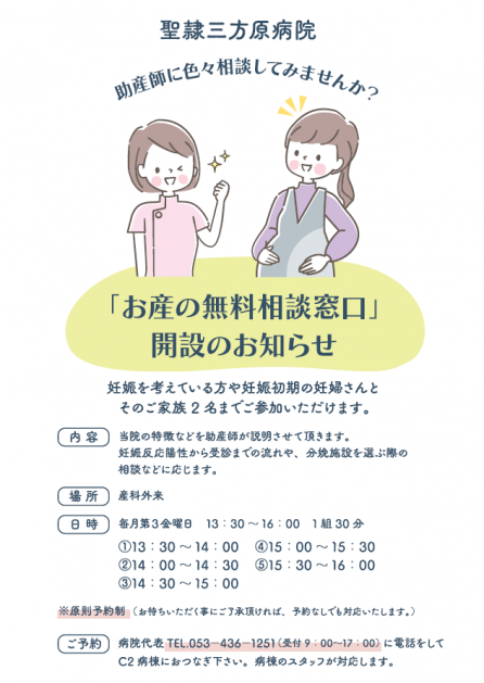 4月から「分娩施設見学会」と「お産の無料相談窓口」を始めています!