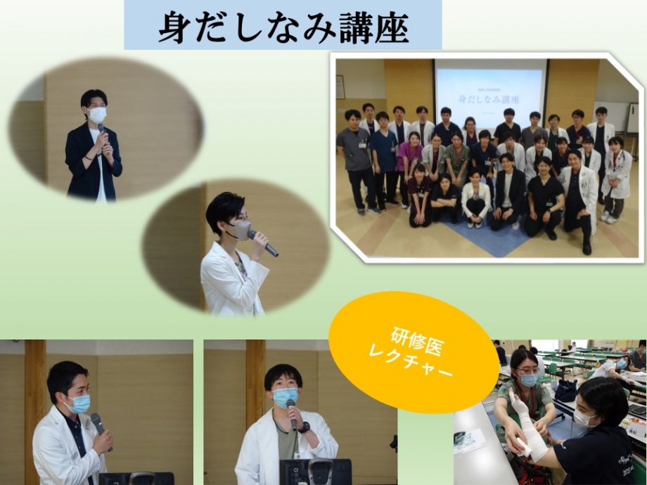 上級医レクチャーでは救急医療に携わっている先生から災害医療、スポーツ医療、事態対処医療についての講義をしていただきました。