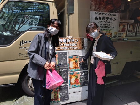 昼は代議員のAさんと西部地区支部長の江上さんはお弁当がでましたので、私達3人はキッチンカーでもち粉チキン弁当を買って食べました。期間限定アボガドジンジャーソース美味しかったですよ~(^^)V